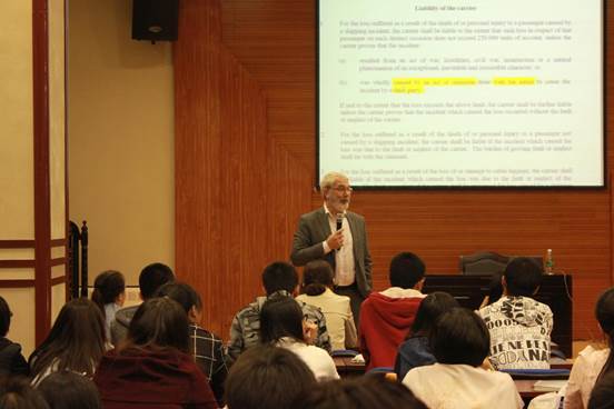 On October 12, 2015, Eric Rosage, Professor of Oslo University in Norway visited DMU Law School and delivered academic lectures. Professor Eric Rosage is the director of the Scandinavian Maritime Law Research Center, the drafter of 1974 Athens Convention, also as the full participant involved in drafting of The Rotterdam Rules on behalf of the Norwegian Government. Professor Eric Rosage is a distinguished maritime law expert with global reputation.