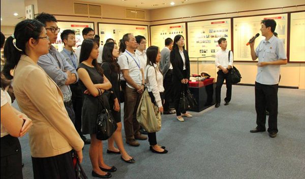Later Hong Kong students were lead to visit Law School Building, Navigation Teaching Building, Planetarium, Auditorium, The East Stadium, and Marble Pillar and so on. Students of DMU East campus implemented militarization management mode, the queue was neat, unanimously white shirt demonstrated DMU specialty that impressed Hong Kong students greatly. The school motto stone and architecture conveyed special spirit of DMU.