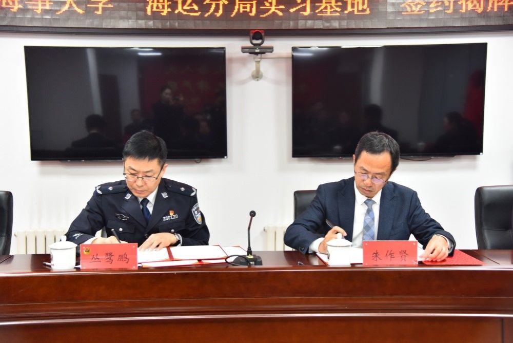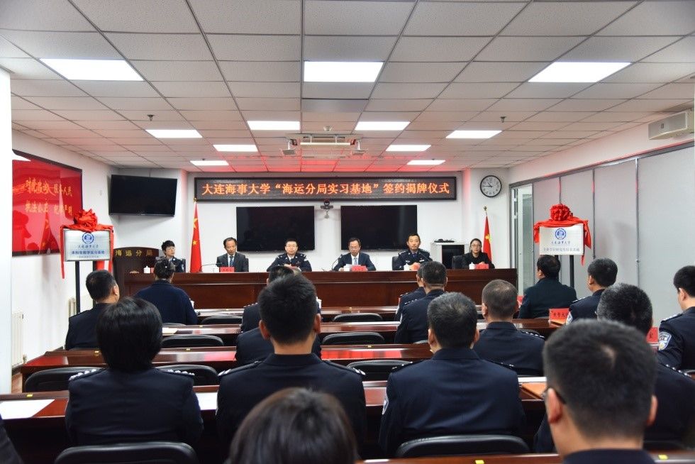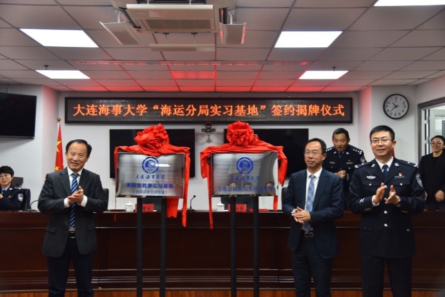 11月7日上午,bwin必赢与大连市公安局海运分局举行本科生教学实习基地和专业学位研究生培养基地签约暨揭牌仪式。大连市公安局海运分局局长丛鹭鹏,中远海运客运有限公司副总经理王殿富、船舶管理中心党总支书记张勇胜,大连市公安局海运分局政工纪检处主任罗激扬、副局长任宪萍,bwin必赢院长朱作贤、党委副书记兼副院长谭冰、行政办公室主任丁祖山以及大连市公安局海运分局干警代表和bwin必赢指导员代表参加仪式。仪式由大连市公安局海运分局政工纪检处主任罗激扬主持。