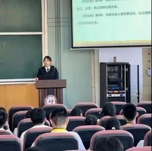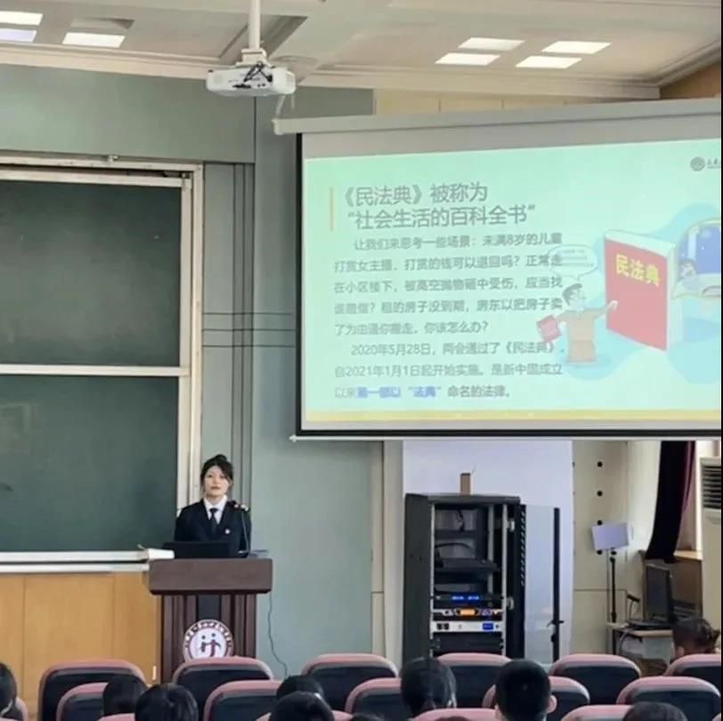 2024年10月23日下午,法律援助工作站党支部学生党员刘思慧、入党积极分子龙果、入党申请人刘淑沅以及法律援助工作站社团成员任琳4人走进大连市第二十高级中学,以《民法典》总则篇的法律实践应用为视角开展课程。课堂上,宣讲人通过案例分析、情景模拟、播放视频等方式提升趣味性,并且为大家发放民法典使用手册,增强普法实用性。在高中生们踊跃提问、积极参与的过程中,增进了对《民法典》和反校园霸凌知识的理解和掌握。