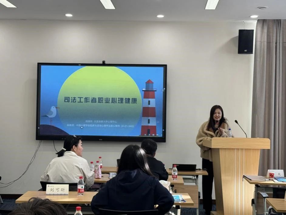 11月12、22日上午,大连海事大学心理中心主任阎婧祎副教授讲授了《司法工作者职业心理健康》。她以生活与社会问题为引入,讲述了个体压力的来源,就缓解情绪压力的专题与学员进行了探讨交流。
