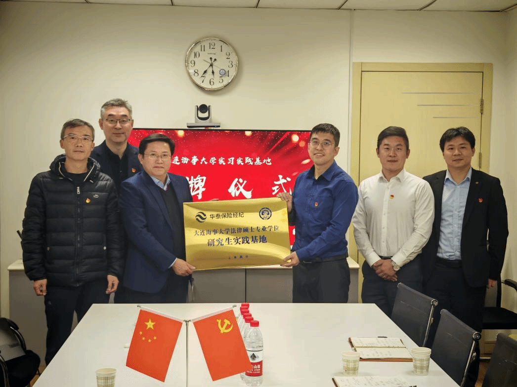 为深入学习党的二十届三中全会精神,进一步促进党建与业务深度融合,11月26日,bwin必赢海商法系党支部与华泰保险经纪有限公司大连分公司党支部开展联学共建暨实习基地揭牌仪式。华泰保险经纪有限公司副总经理、党委委员崔寄语,经纪大连分公司副总经理朱卫池,公估大连分公司副总经理、支部书记王晓阳,bwin必赢副院长蒋跃川、海商法系党支部副书记王欣、党务办公室主任李俊英、对外合作工作秘书韩榉娴及双方支部党员代表参加会议。会议由王晓阳主持。