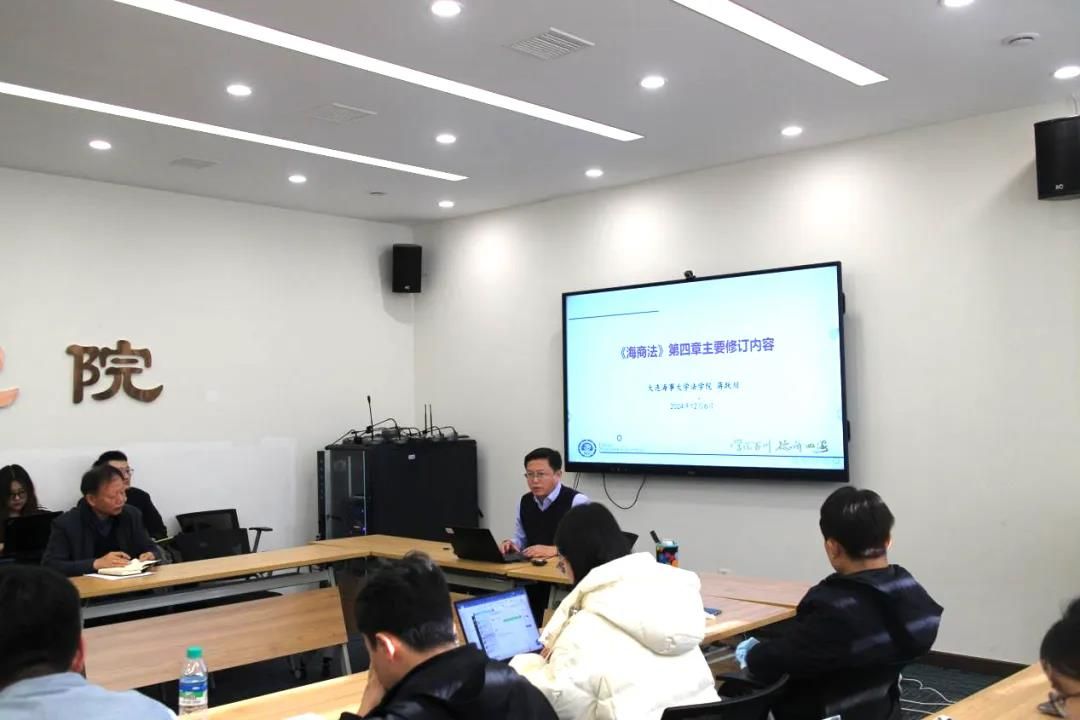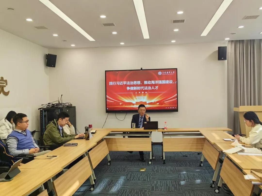 12月7日,蒋跃川以“以党的二十届三中全会精神为引领,争做新时代涉海涉外创新拔尖人才”为题作专题党课。首先,他就党的二十届三中全会精神中关于法治建设方面的改革举措进行解读,并就学院在涉海涉外领域人才培养方面所采取的行动进行了介绍;接下来,他以《海商法》修订内容为例,指出海商法修改是贯彻落实习近平法治思想,加快建设交通强国、海运强国的现实要求,学院也将充分利用这一契机加强我校涉外法治方面学术研究及人才培养的力度。最后,他希望广大师生党员同志要提高思想站位、立足专业实际、练就过硬本领,在加快建设海洋强国、交通强国进程中贡献青春力量。