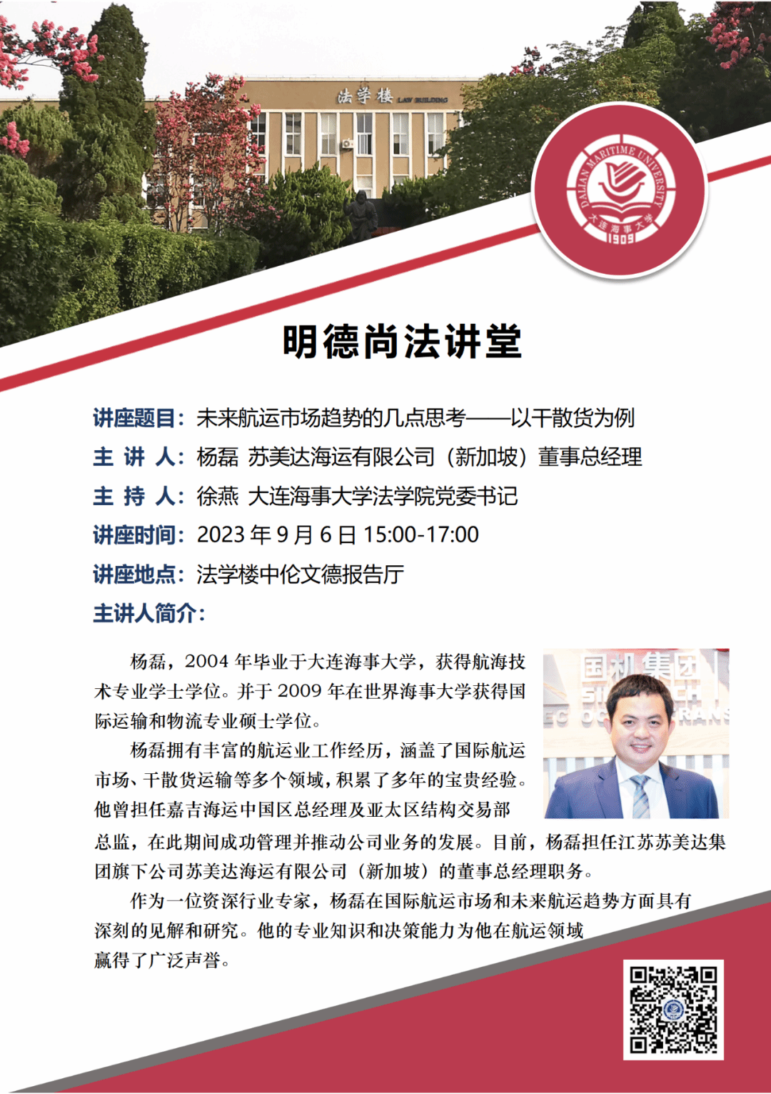 讲座通知 |【明德尚法讲堂】杨磊:未来航运市场趋势的几点思考——以干散货为例