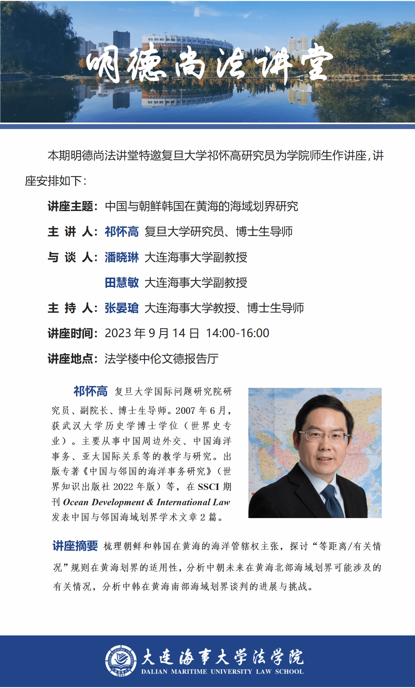 讲座通知 |【明德尚法讲堂】祁怀高研究员:中国与朝鲜韩国在黄海的海域划界研究