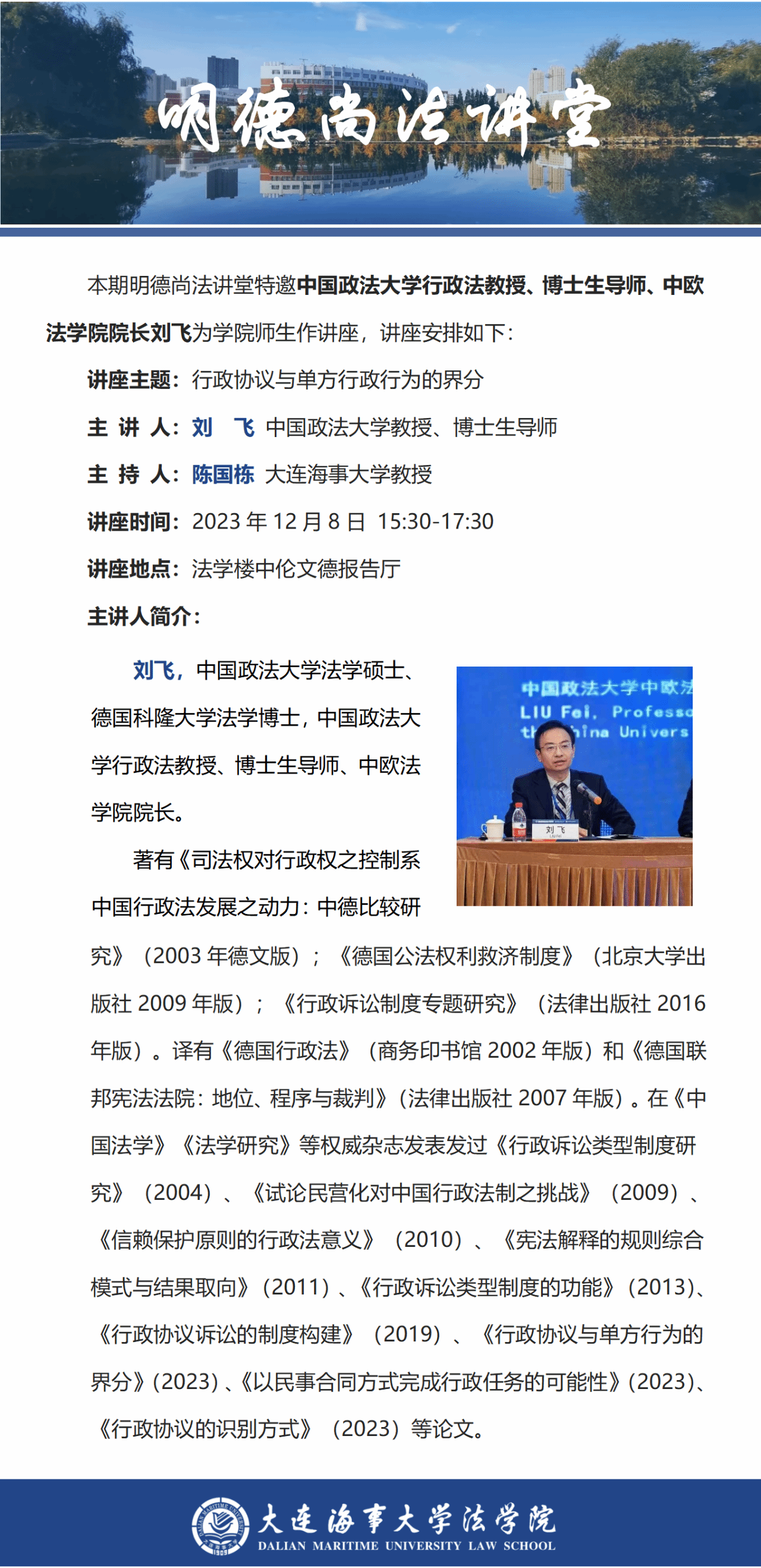讲座通知 |【明德尚法讲堂】刘飞教授:行政协议与单方行政行为的界分