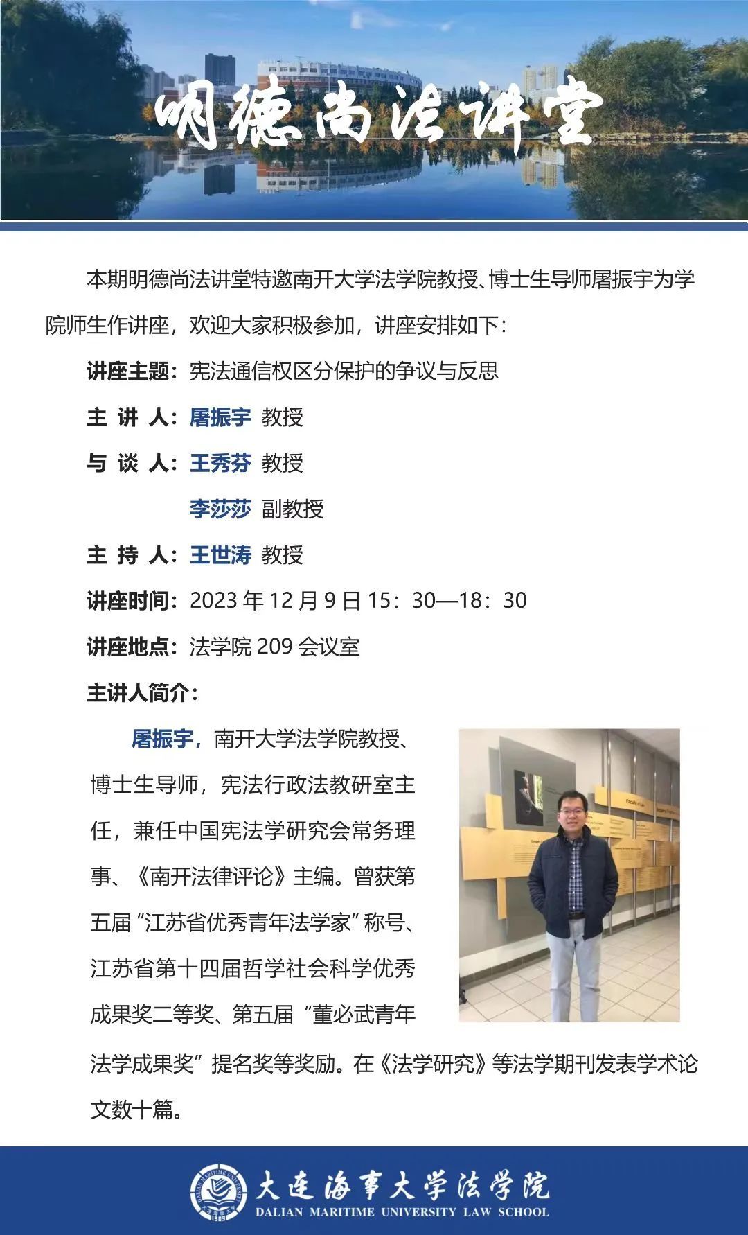 讲座通知 |【明德尚法讲堂】屠振宇教授:宪法通信权区分保护的争议与反思