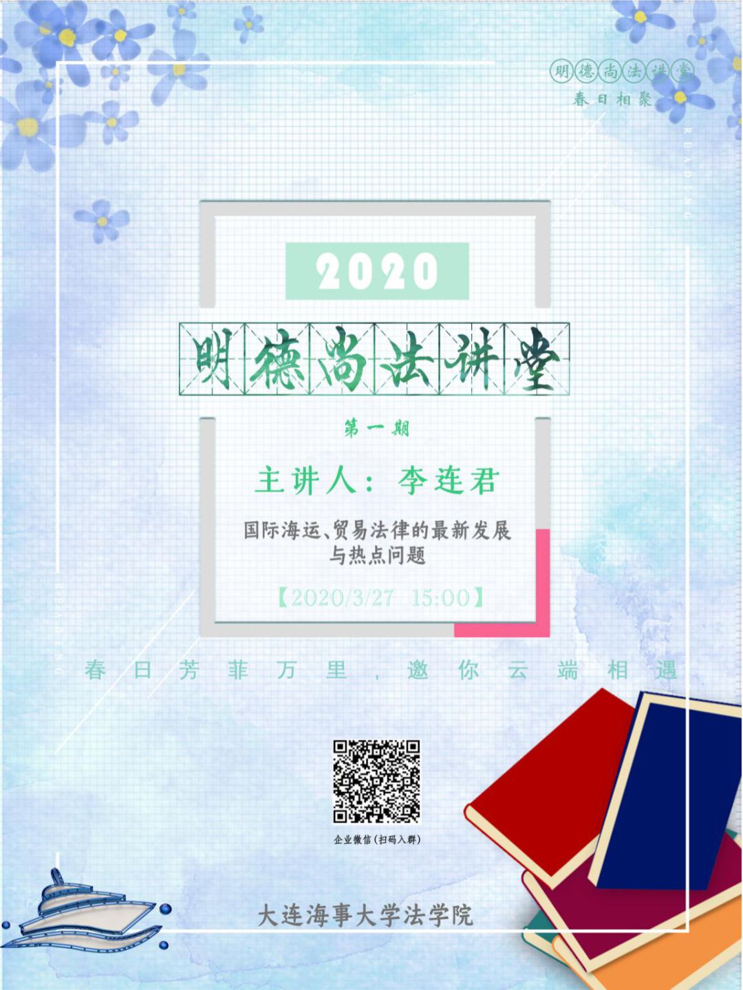 为促进疫情期间同学们的高效居家学习和科研交流,bwin必赢“明德尚法讲堂”第一期活动,将于本周五(3月27日 15:00)正式拉开帷幕。本次讲座邀请我校知名校友礼德齐伯礼律师行合伙人李连君律师,为我们带来题为《国际海运、贸易法律的最新发展与热点问题》的讲座。